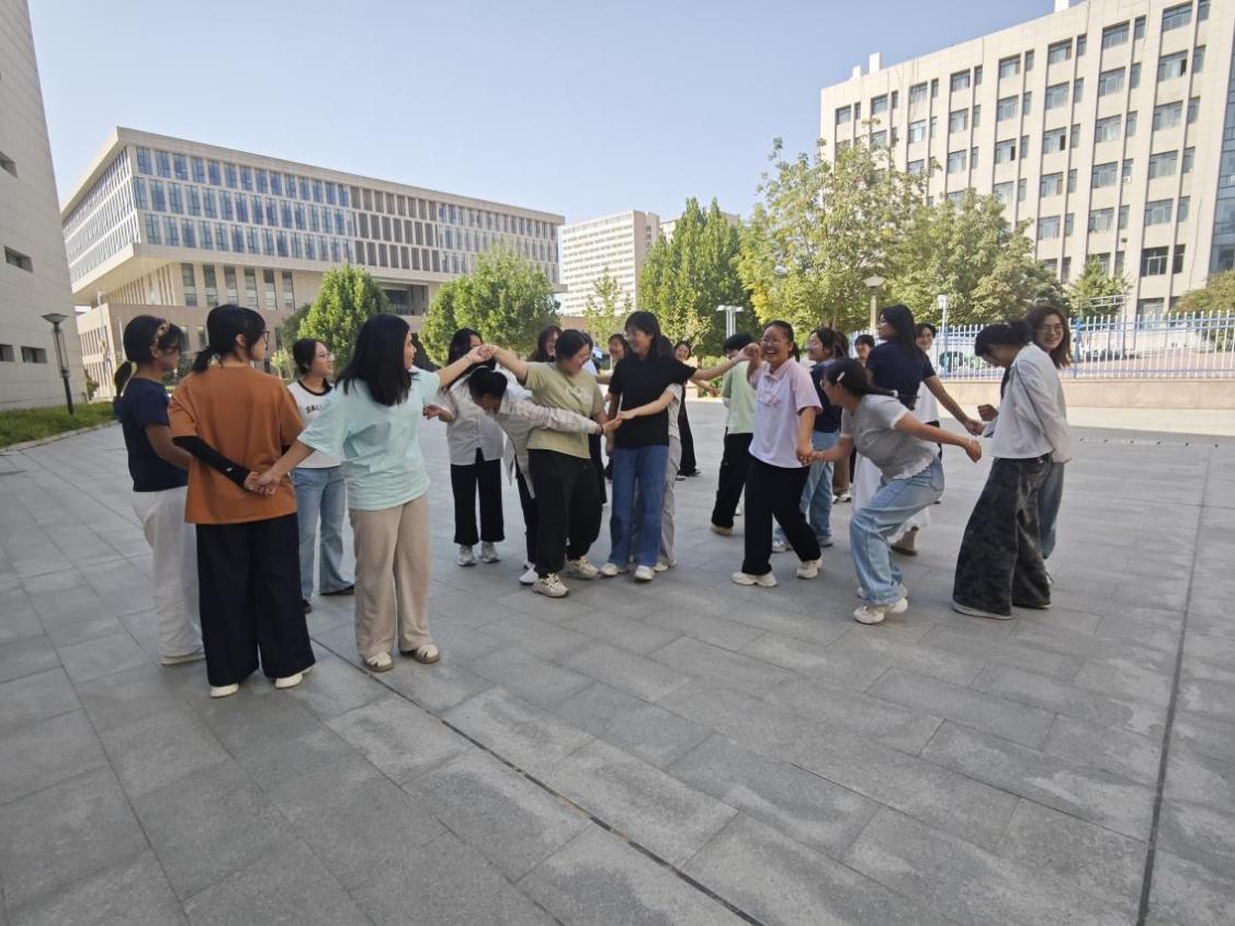 “心有千千结” 游戏成为考验协作的关键环节。新生们手拉手形成 “结状”,在班级助理的提示下,通过沟通调整站位、变换姿势,齐心协力解开 “心结”。过程中,此起彼伏的笑声与互相提醒的话语,让新生们深刻体会到团队协作的重要性,信任感显著增强。
